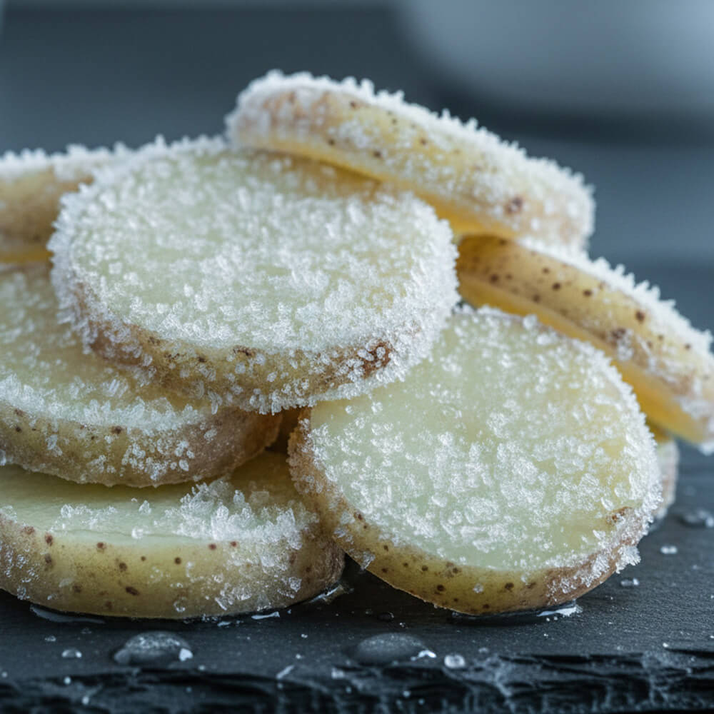 Die feinen Frost-Kristalle auf den Kartoffelscheiben sehen zwar schick aus, ruinieren aber die Stärkestruktur. Die Knollen werden nach dem Auftauen süßlich und unnatürlich weich.