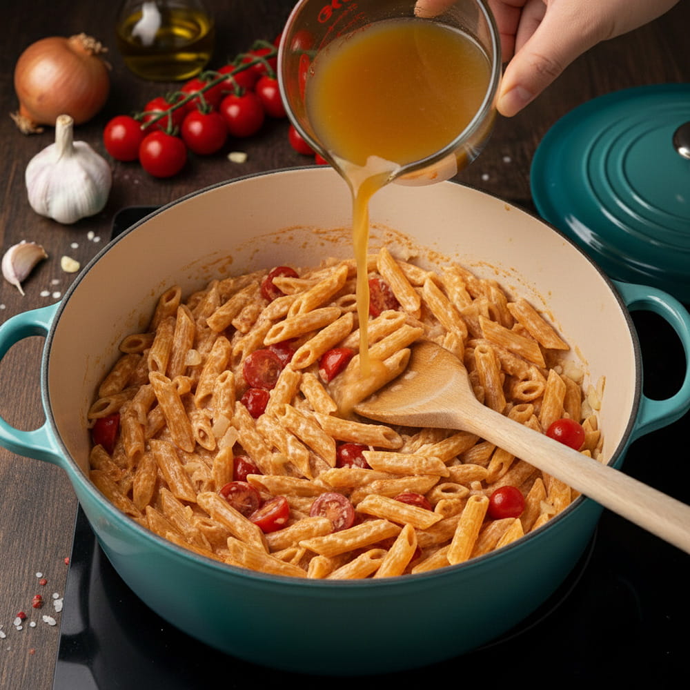 Zubereitung einer leckeren, schnellen One-Pot-Pasta