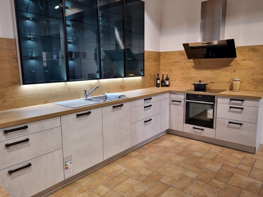 Küche in L-Form mit Designhängeschränken | Koje 40